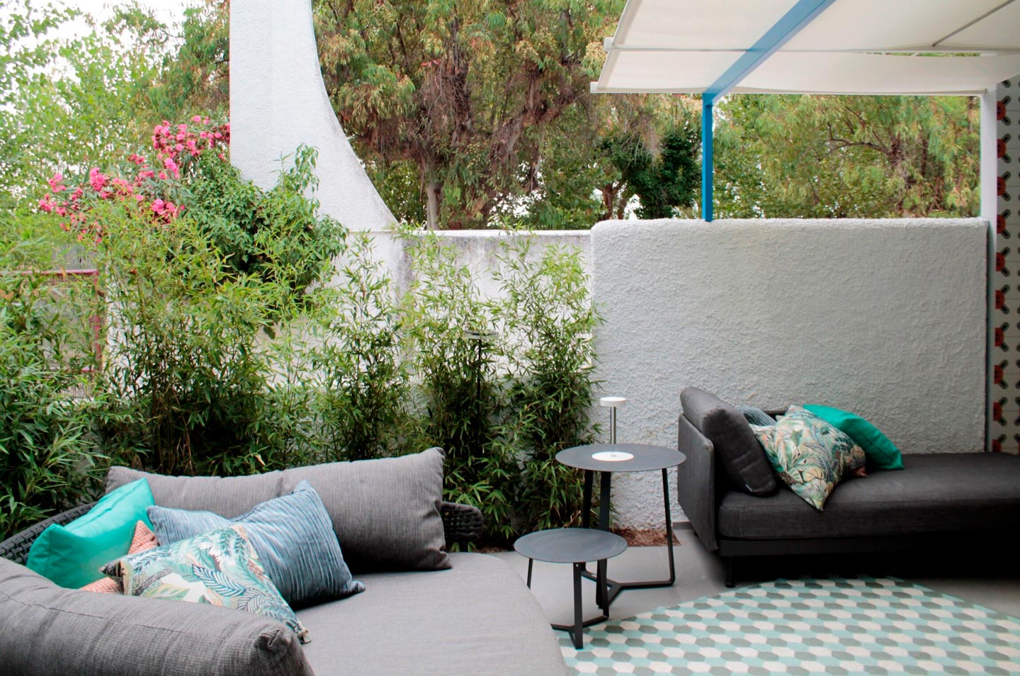 Auf der Außenterrasse durften Talenti Produkte nicht fehlen, wie das Daybed aus der Moon Alu Collection, der Couchtisch aus der Touch Collection und die Sofa Lounge aus der Slam Collection; wertvolle Elemente, die die eklektische Idee von Studio Moreno Farina mit Eleganz und Stil unterstützen können.