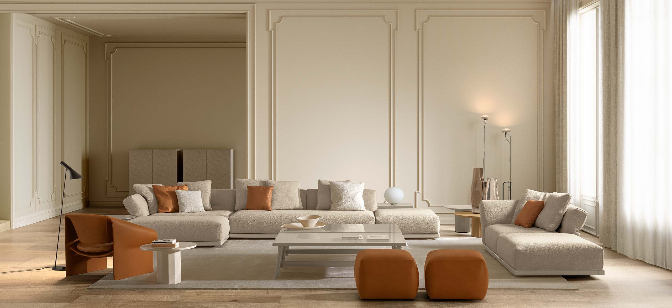 Wie die Musik, auf die sie subtil anspielt, vereint ELTON Brillanz und Originalität und macht das Sofa zum selbstbewussten Mittelpunkt des Wohnraums. Eine Kollektion, die keine Angst hat, aufzufallen, und Ästhetik sowie Funktionalität zu einem ausdrucksstarken und authentischen Komforterlebnis verbindet.