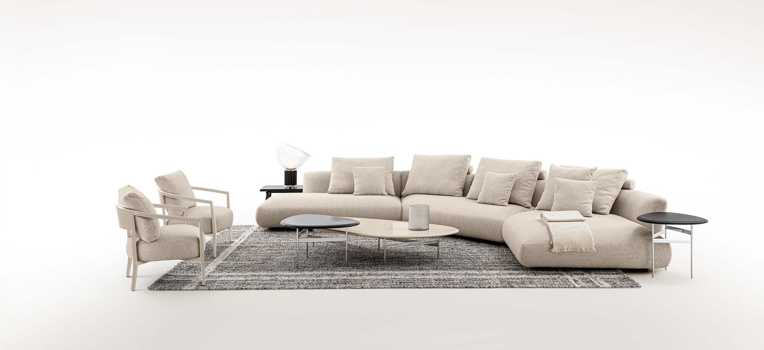 Die Kollektion TAMASHI entspringt einer Vision von Strenge und Harmonie, inspiriert von der klassischen japanischen Tradition, in der jede gestalterische Entscheidung essenziell und bedeutungsvoll ist. Der Name, der im Japanischen Geist und Seele bezeichnet, steht für eine stille, aber tiefgründige Formensprache, die Ruhe und Ausgewogenheit vermittelt. TAMASHI ist ein bodennahes Polstermöbel, erhältlich als Monoblock oder in modularen Konfigurationen, das sich mühelos an unterschiedliche Räume anpasst. Die nach außen geneigten Rücken- und Armlehnenkissen verleihen dem Volumen Leichtigkeit und sorgen für eine elegante, zeitgemäße Erscheinung. Ein reduziertes, klares Design, das formale Disziplin und Komfort vereint und sich auch für kleinere Räume eignet.