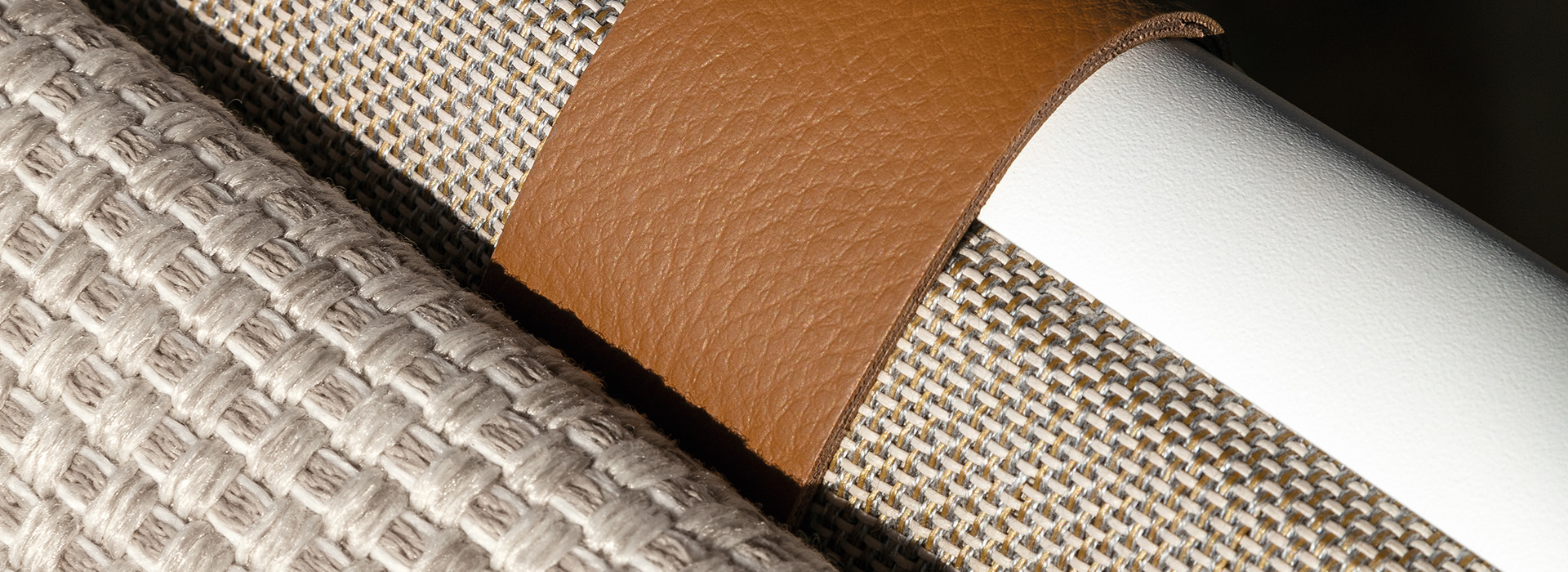 Gewebe 93% recyceltes PP + 7% PL, schwer entflammbar, wasserabweisend