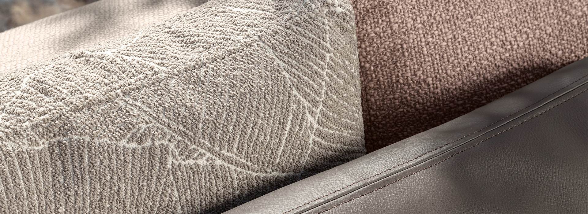 Gewebe 93% recyceltes PP + 7% PL, schwer entflammbar, wasserabweisend