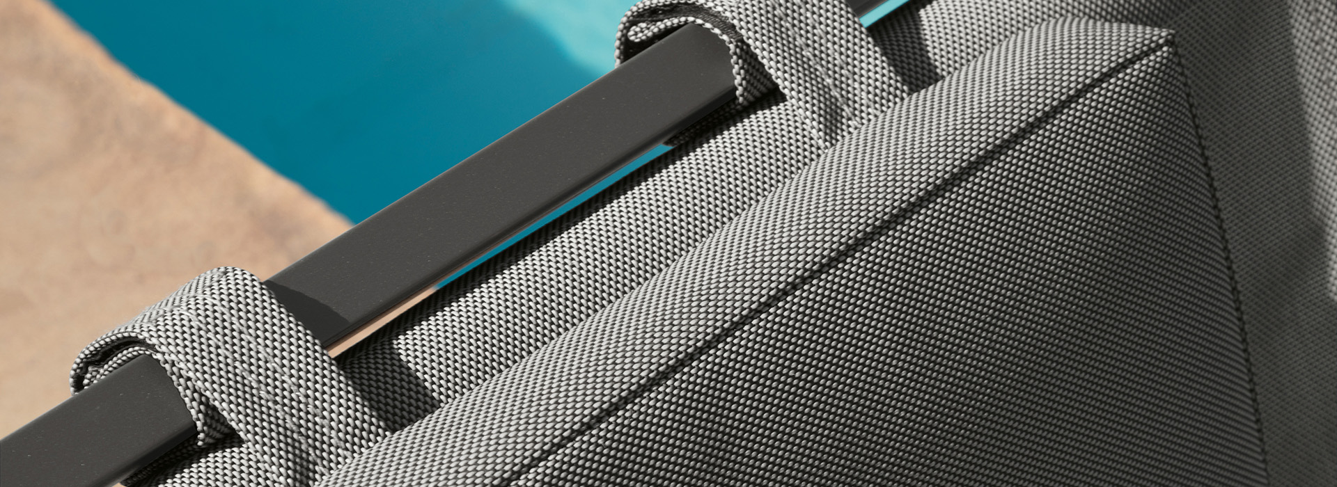 Bei Textilene handelt es sich um eine Polyesterfaser, die mit PVC ummantelt wird. Die Fasern werden dann zu einer fibrigen Substanz zusammengefasst, wodurch ein besonders strapazierfähiges und langlebiges Gewebe entsteht, das flexibel und hoch reißfest ist. Die wichtigste Eigenschaft von Textilene ist seine Elastizität; darüber hinaus ist es schimmel- und fleckenabweisend und dank einer speziellen Oberflächenbehandlung UV-beständig.