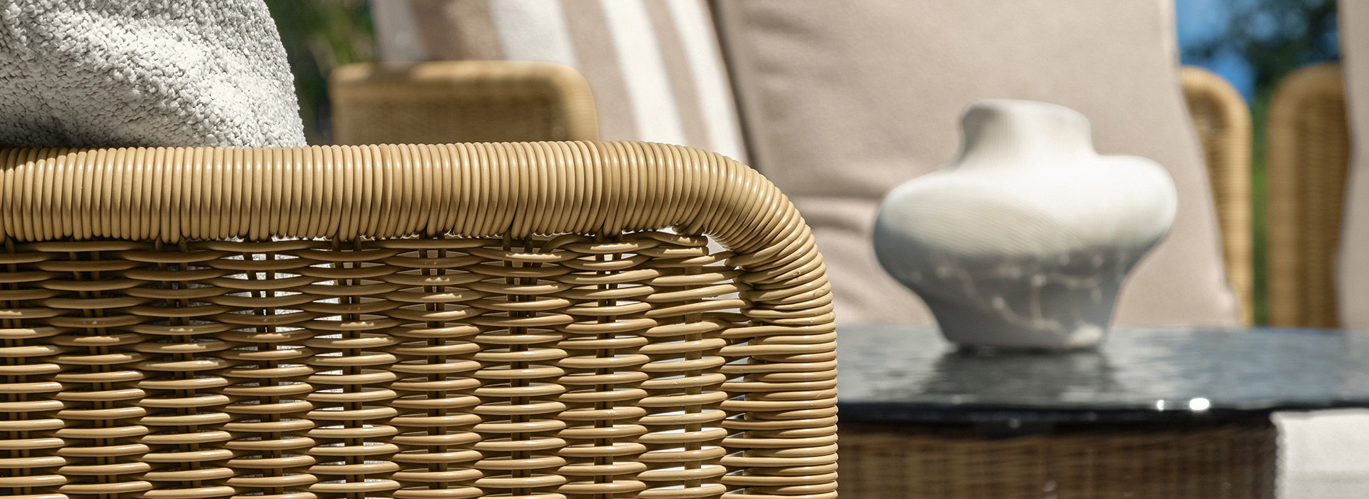 Die Wicker-Faser ist ein synthetisches Material, das das Aussehen von feinem Rattan nachbildet, mit dem zusätzlichen Vorteil, vollständig wetterbeständig und langlebig zu sein. Ein besonderes Merkmal der Wicker-Faser ist ihr Geflecht, das sorgfältig von Hand gefertigt wird.