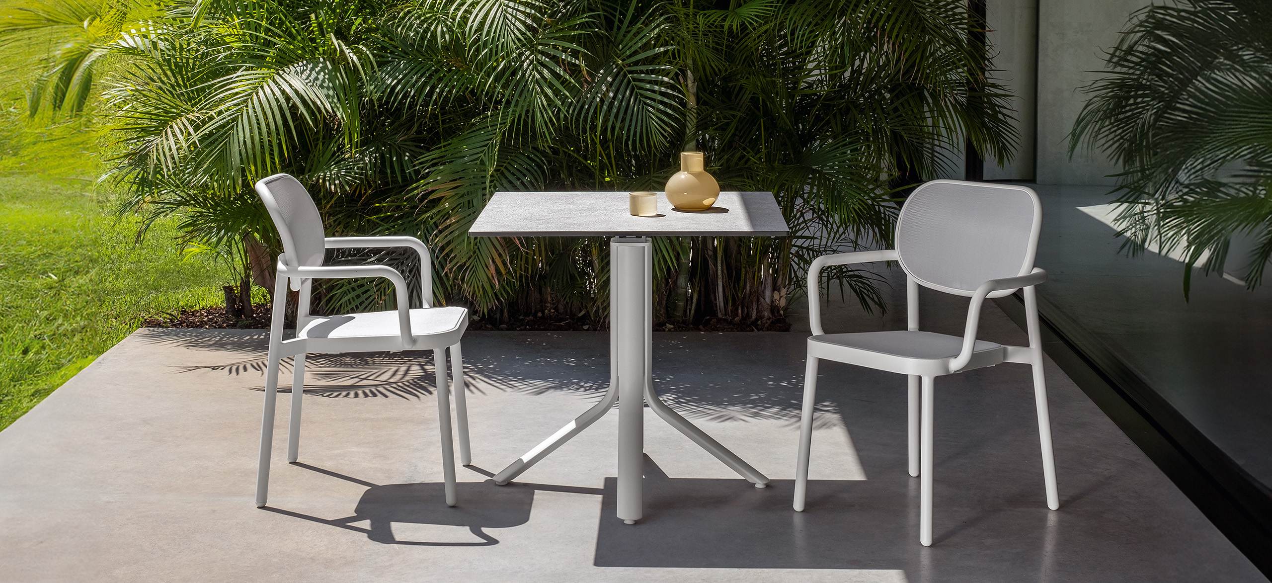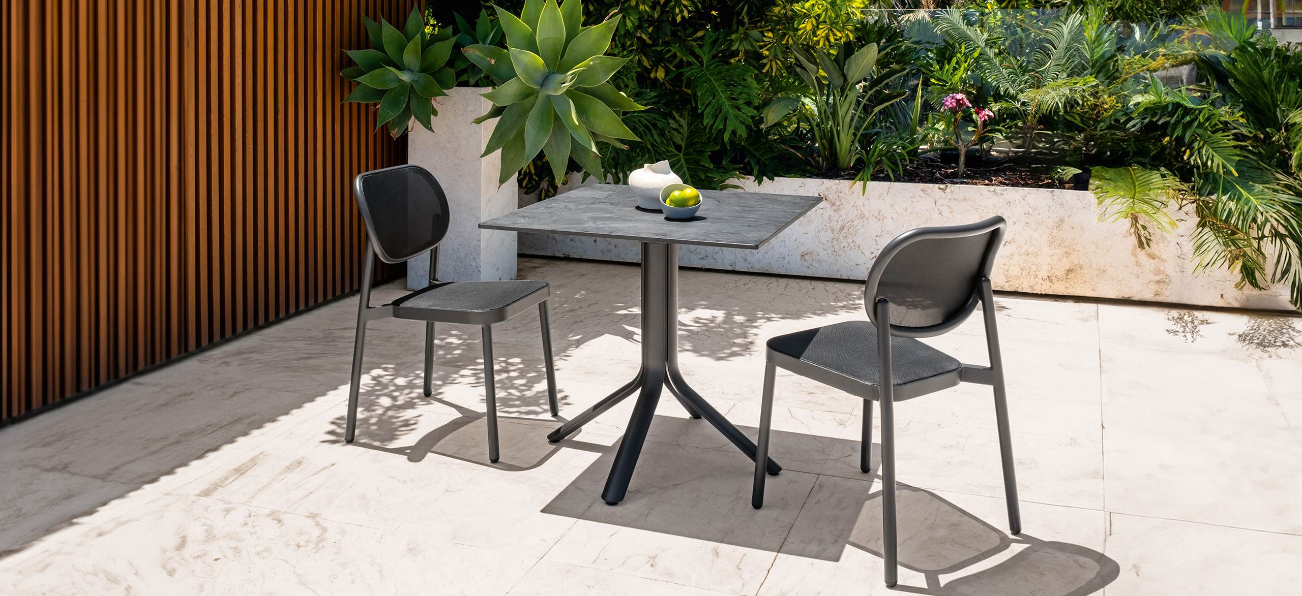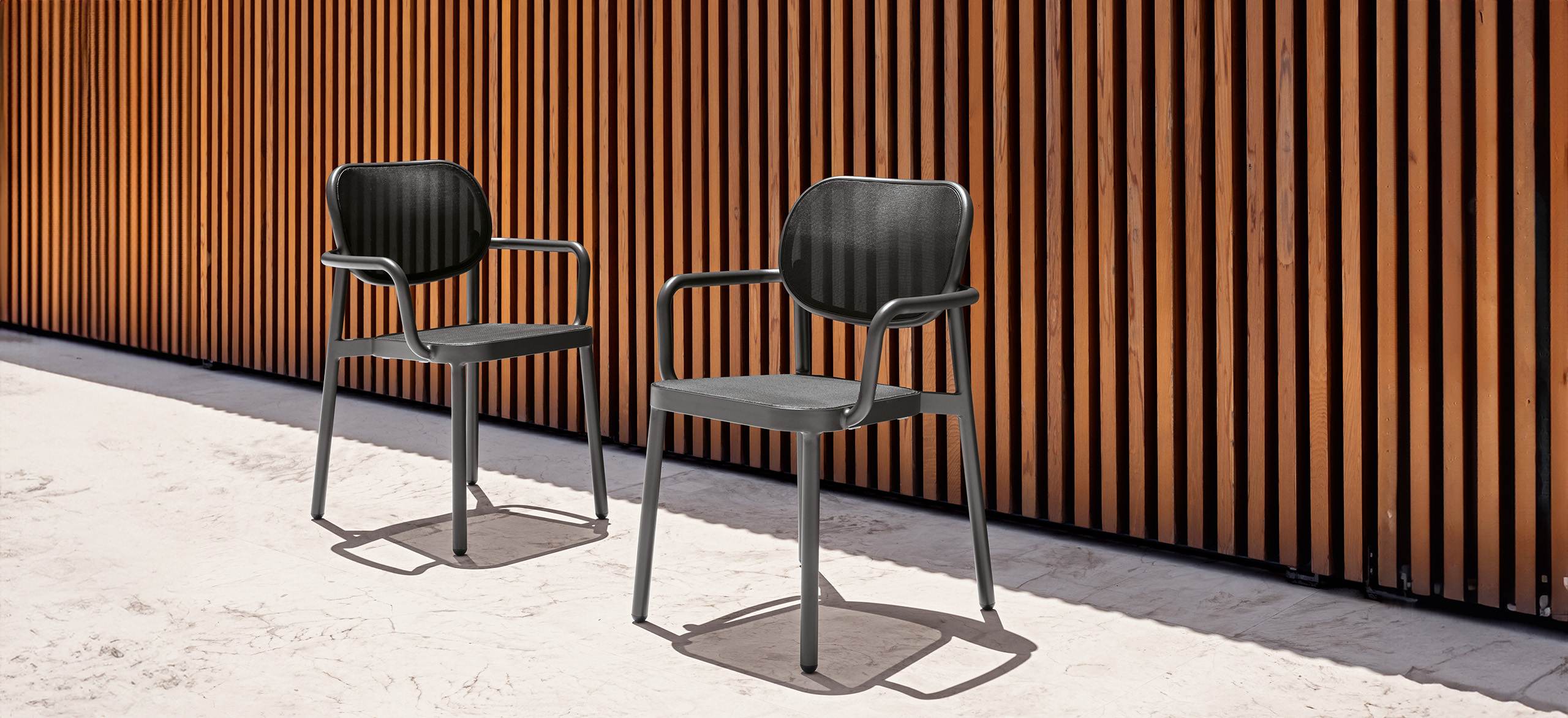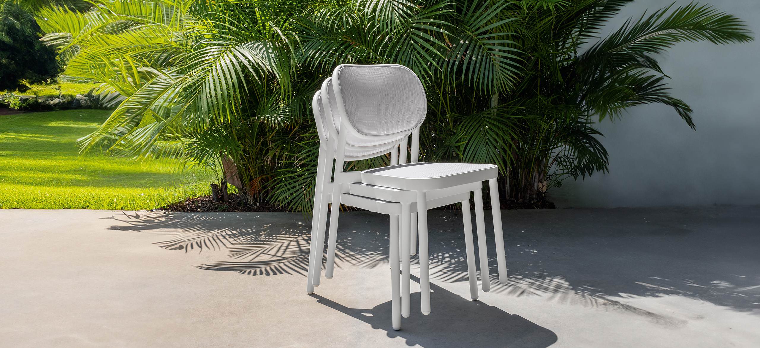 Die pulverbeschichtete Aluminiumstruktur, leicht und dennoch robust, harmoniert mit Sitz und Rückenlehne aus Textilene. Jedes Detail ist darauf ausgelegt, ein intuitives und angenehmes Nutzungserlebnis zu bieten, bei dem Ästhetik und Funktionalität in perfekter Harmonie zusammenwirken.