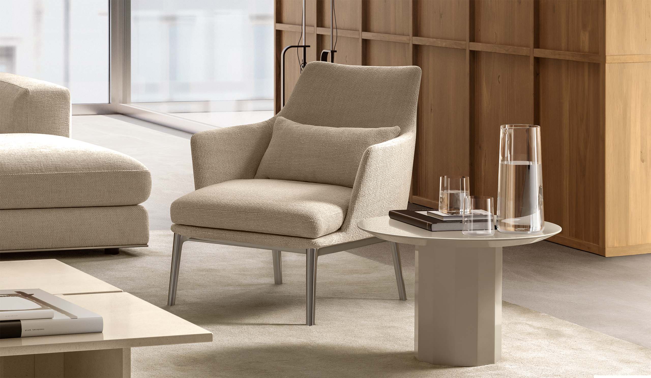 Der Sessel CLAUDE für Ess- und Wohnbereiche erinnert an den musikalischen Impressionismus, der den ikonischen Komponisten Claude Debussy zum Pionier machte. Ein Möbelstück mit sanftem Charakter, dessen zeitlose, weiche Formen eine ausgewogene und einladende Sitzfläche schaffen. Fließende Linien treffen auf sorgfältig ausgewählte Materialien: Metallbeine verleihen Leichtigkeit und Eleganz, während Stoff- oder weicher Lederbezug hohen Komfort bietet. Dank seiner Vielseitigkeit passt sich CLAUDE harmonisch sowohl dem Essbereich als auch dem Wohnraum an.