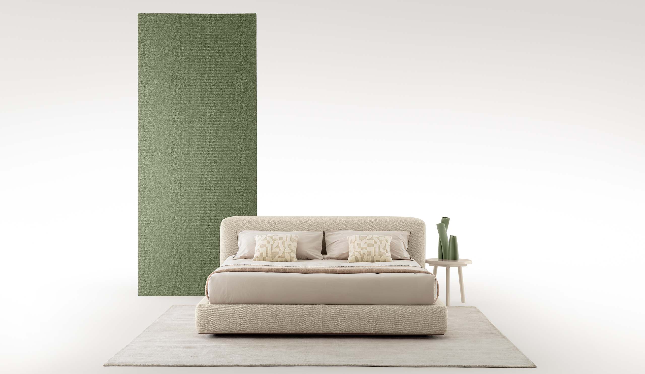 Das Bett GLADYS interpretiert den Schlafbereich mit einer weichen, beruhigenden Eleganz, bei der Komfort und hochwertige Verarbeitung in einem ausgewogenen, zeitlosen Design zusammenfinden. Das großzügig gepolsterte, umhüllende Kopfteil ruht auf einer Konstruktion aus Mehrschichtholz und Massivholz, die Stabilität und Langlebigkeit gewährleistet. Der umlaufende Rahmen aus Mehrschichtholz ist mit hochdichtem Polyurethanschaum und Polyesterfaser gepolstert und bietet ein besonders angenehmes Liegegefühl. Der Bezug ist in Stoff oder Leder erhältlich und unterstreicht die hochwertige Materialität. Die verzinkte Stahl-Unterfederung sowie die Druckguss-Aluminiumfüße mit Bodengleitern aus thermoplastischem Polymer vervollständigen ein solides und komfortables Bett für erholsamen Schlaf.