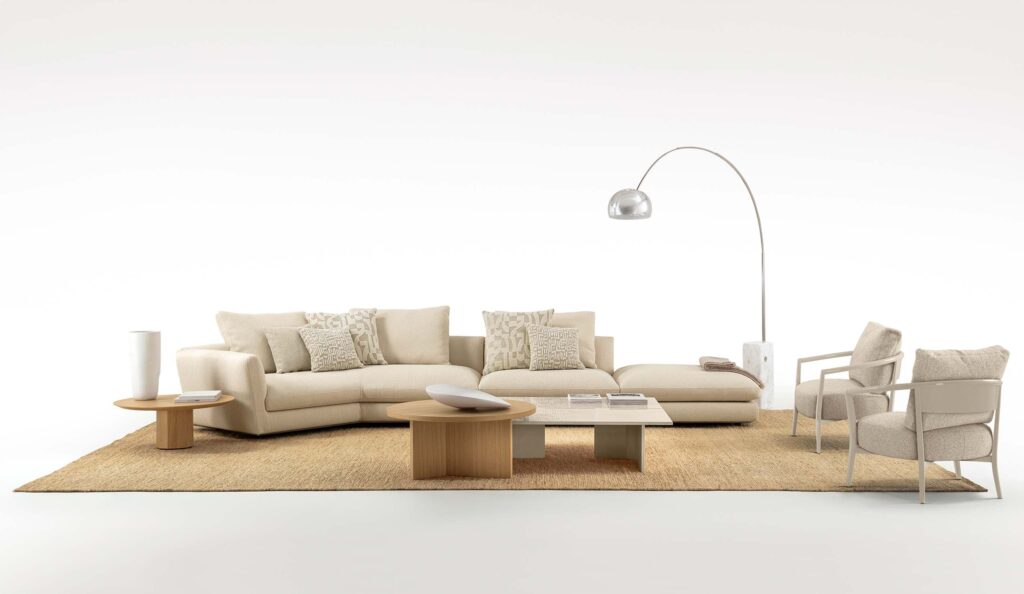 Der MILES Pouf ergänzt die Kollektion als vielseitiges und funktionales Element. Ob als zusätzliche Sitzgelegenheit, Ablage oder natürliche Erweiterung des Sofas – er greift die weichen Formen und die ästhetische Ausgewogenheit der Linie auf. Seine zurückhaltende Präsenz sorgt für Flexibilität und unmittelbaren Komfort.