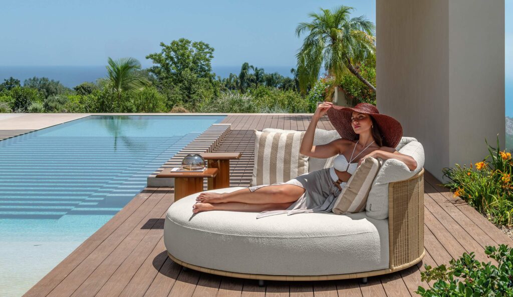 Das Bond-Daybed ist eine Einladung zur totalen Entspannung und verwandelt den Außenbereich in eine Oase des Wohlbefindens. Die großzügige runde Sitzfläche, umgeben von einer Rattanstruktur und gestützt von Aluminium, bietet ein perfektes Gleichgewicht zwischen Weichheit und Stabilität. Große, weiche Kissen verstärken das Gefühl der Gastfreundschaft, während fließende, kontinuierliche Linien die Harmonie natürlicher Landschaften widerspiegeln. Als skulpturales und funktionales Objekt wird es zum Protagonisten von Terrassen, Gärten oder Poolbereichen.