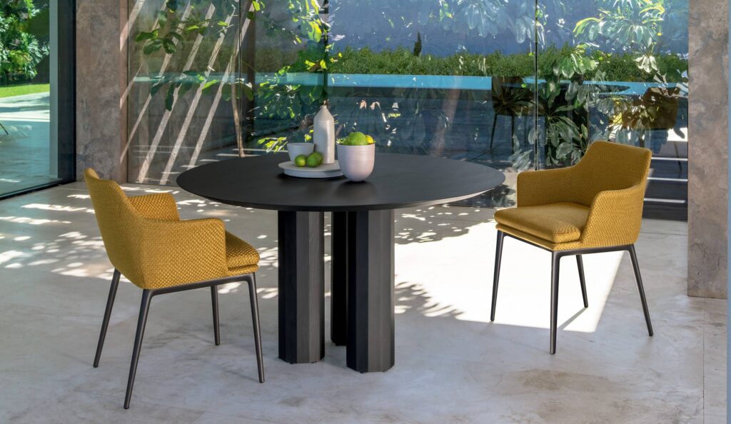 Der Esszimmersessel Claude greift das Konzept des gleichnamigen Wohnstuhls auf, mit typischem Indoor-Design, das sich dank Talenti jedoch in einer Outdoor-Version wiederfindet und das gesamte konstruktive Know-how des Unternehmens unterstreicht. Beine aus pulverbeschichtetem Aluminium in doppelter Farbwahl und Struktur aus Polyurethanschaum, meisterhaft beschichtet, um Komfort und Haltbarkeit zu gewährleisten.
