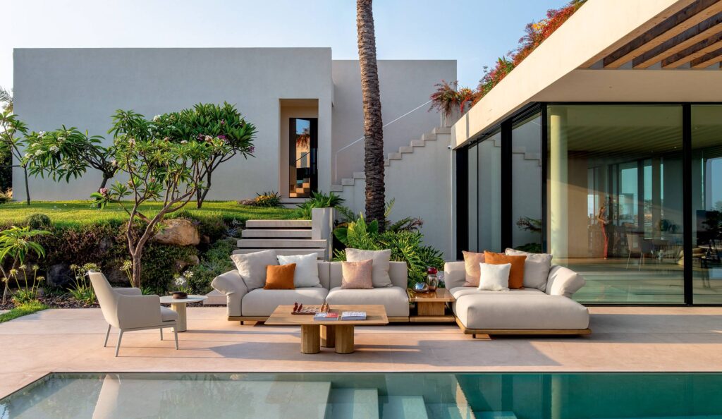 Der Couchtisch Elton ist die Quintessenz der Eleganz. Mit seiner charakteristischen doppelten Höhe dient er als eigenständige Ablagefläche oder als Beistelltisch zur Vervollständigung der modularen Komposition, wobei er sich durch die Materialwahl harmonisch mit den gepolsterten Elementen verbindet. Eine solide Struktur aus Accoya-Holz, in zwei wählbaren Ausführungen – naturbelassen oder Palisander – und eine rückseitig lackierte Tischplatte aus gehärtetem Glas in den Nuancen Weiß, Orange und Ultramarin machen ihn zu einem Stück von unverwechselbarem italienischem Charme.