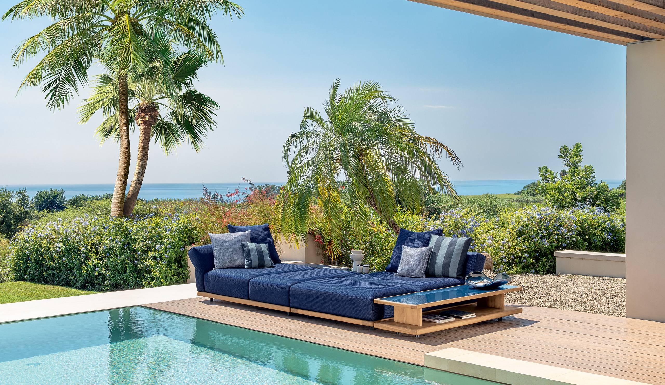 Der Couchtisch Elton ist die Quintessenz der Eleganz. In der erweiterten Version, die für große Wohnkompositionen konzipiert ist, spielt er mit der charakteristischen doppelten Höhe und verbindet sich durch die Materialwahl harmonisch mit den gepolsterten Elementen. Eine solide Struktur aus Accoya-Holz, in zwei wählbaren Ausführungen – naturbelassen oder Palisander – und eine rückseitig lackierte Tischplatte aus gehärtetem Glas in den Nuancen Weiß, Orange und Ultramarin machen ihn zu einem Stück von unverwechselbarem italienischem Charme.