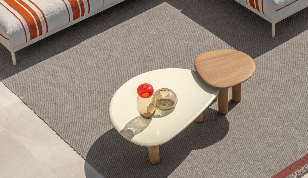 Kompakt und elegant ist der Couchtisch 50×52 das ideale Ergänzungsstück, um gesellige Momente im Freien zu bereichern. Die Teakholzstruktur, leicht und dennoch robust, kann mit Tischplatten aus Holz oder glasiertem Feinsteinzeug kombiniert werden und verbindet so Praktikabilität mit Raffinesse. Perfekt neben Sesseln oder Sofas, wird er zur natürlichen Ablagefläche für Kaffee, einen Aperitif oder ein Buch und verwandelt den Außenbereich in ein gemütliches Wohnzimmer.