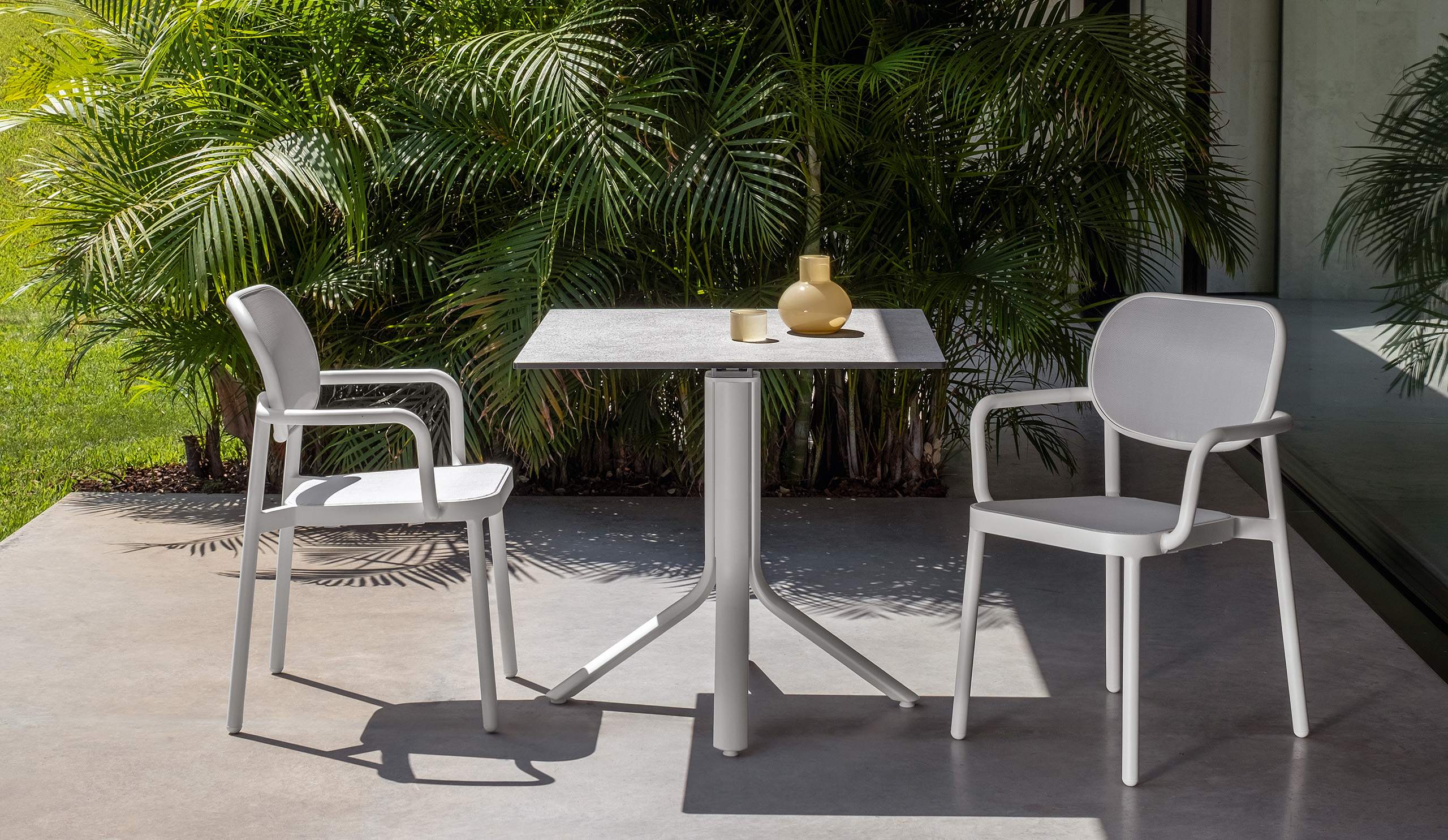 Integrierte Armlehnen erhöhen den Komfort, während das ausgewogene, elegante Design perfekt zu modernen Terrassen- und Gartenmöbeln passt.